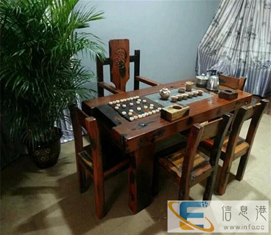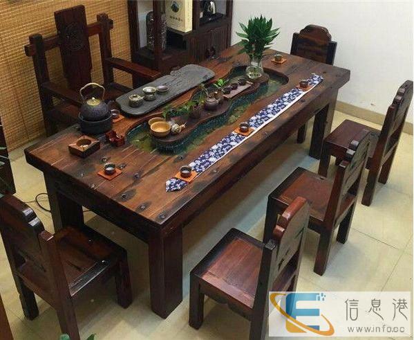 老船木中式茶台 船木茶艺桌博古架利群老船木家具茶桌专门为新老客户定制完美家具.产品