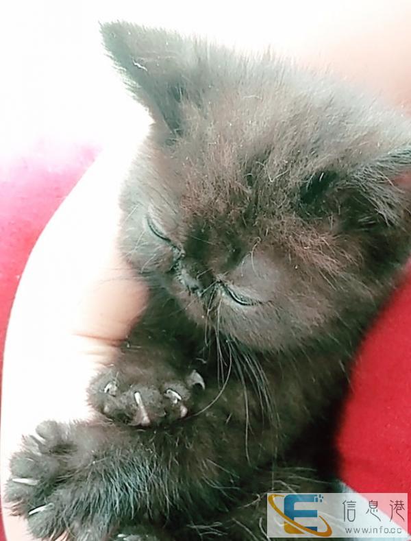 纯黑色加菲猫将近两个月,特别乖,很听话,因为太小没退毛不是很黑,等退完