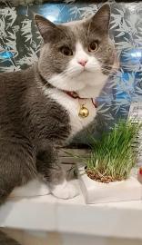英短银渐层借配了我家的小公猫一岁多,长得挺胖的,眼睛很好看是翠绿色的,性