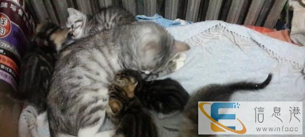 自家虎斑猫小宝宝满月啦自家养的虎斑猫带去华凌和虎斑公配的生了三个小宝宝现