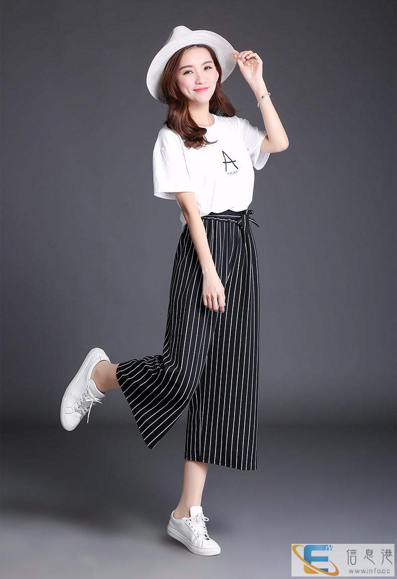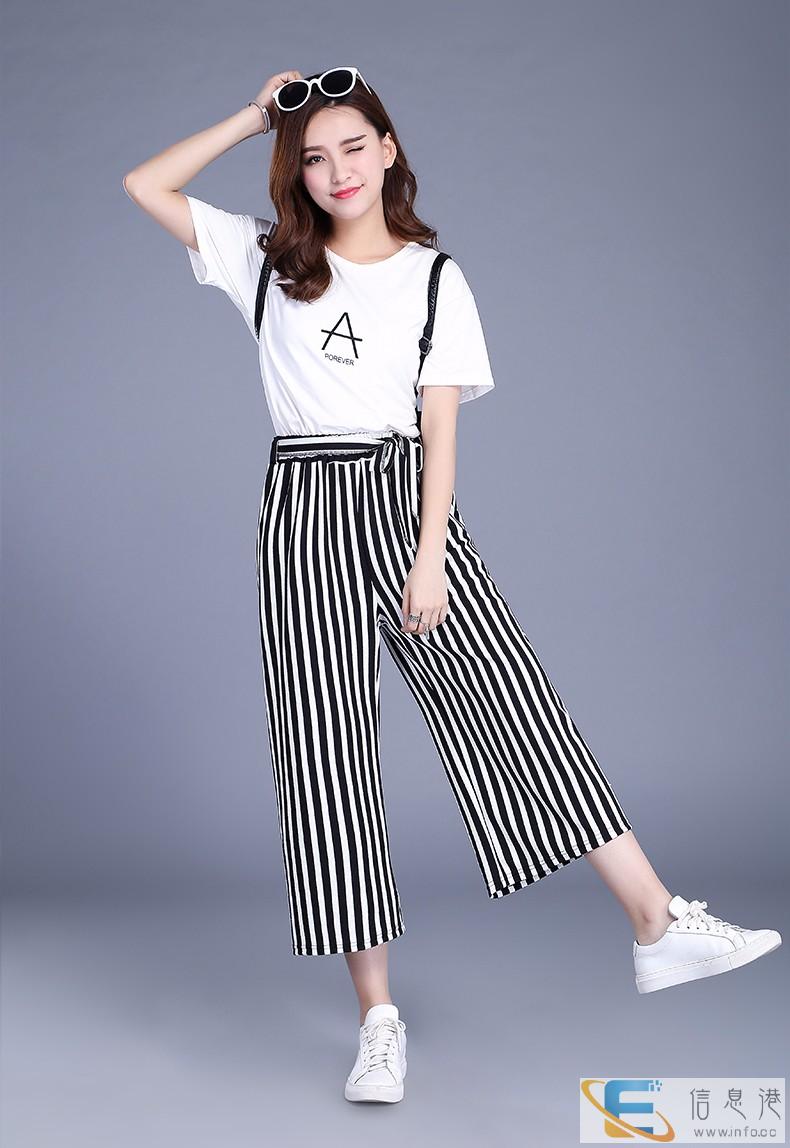 女装夏季薄款韩版条纹跨腿裤七分裤厂家直销可上门考察广东几百万实地现货大仓,厂家低价自产货源,童装、男女装